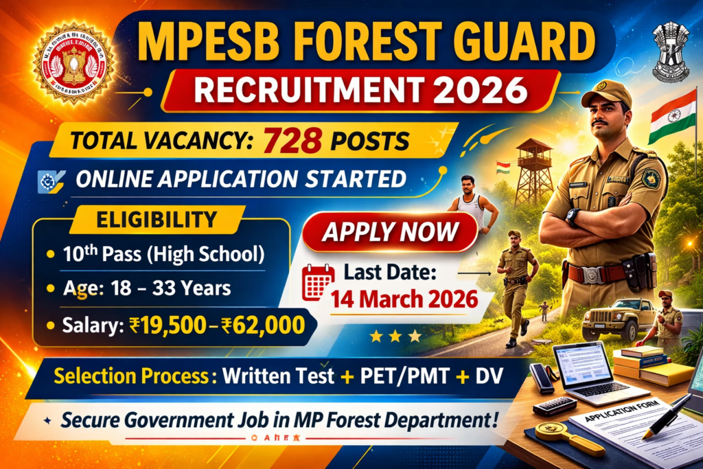 - मध्यप्रदेश वन विभाग में बंपर भर्ती – 728 वनरक्षक पदों पर सुनहरा मौका | MP Van Rakshak Bharti 2026