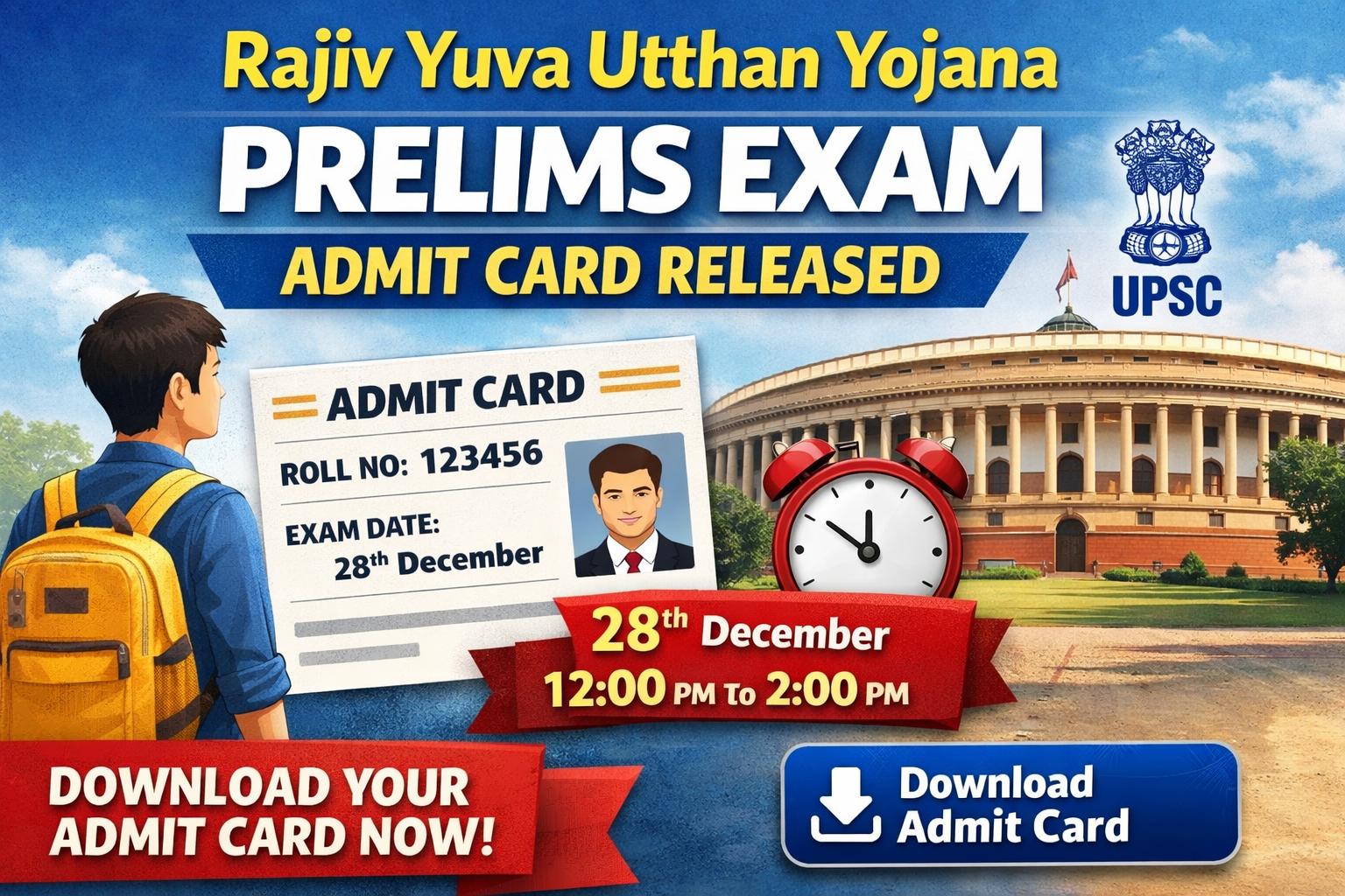 Rajiv yuva utthan yojana admit card: राजीव युवा उत्थान योजना: प्राक्चयन परीक्षा का Admit Card जारी, यहां से करें डाउनलोड