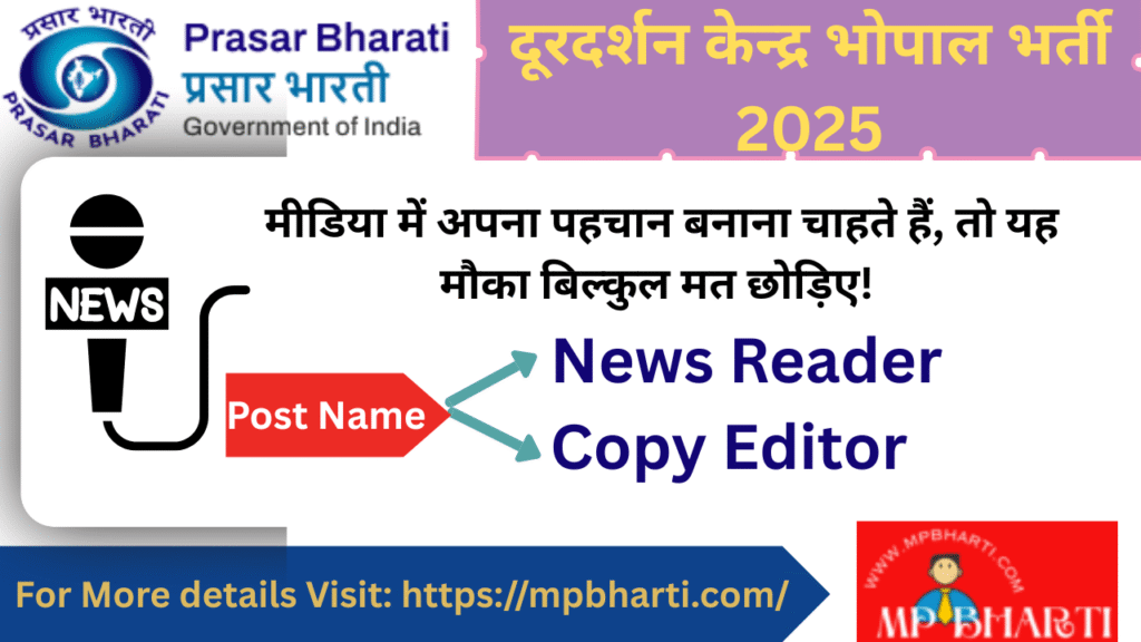Doordarshan Kendra Bhopal Bharti – दूरदर्शन केंद्र भोपाल भर्ती 2025 – ग्रेजुएट उम्मीदवारों के लिए बेहतरीन अवसर