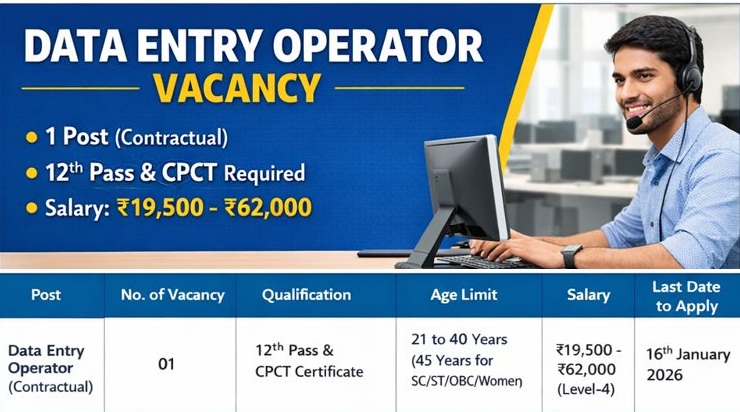 Local Election Office Betul Bharti 2026: The Local Election Office, Betul MP has released a notification for the recruitment of a Data Entry Operator (Contractual) post. Eligible candidates who have passed 12th (10+2) from a recognized board along with CPCT certification from MAP IT can apply. The position carries Level-4 pay matrix ₹19,500–₹62,000, and the last date to apply is 16 January 2026. Applicants must be domicile of Madhya Pradesh, and selection will be made on merit based on CPCT computer proficiency score. Get all details about Local Election Office Betul Bharti 2026, Local Election Office Betul Bharti 2026In Hindi, Local Election Office Betul Vacancy 2026, Local Election Office Betul Recruitment 2026 like no of Vacancy, educational details, age limit, list of important documents required etc