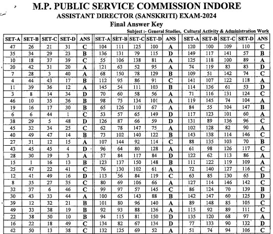 Download MPPSC Assistant Director Exam 2024 Final Answer Key