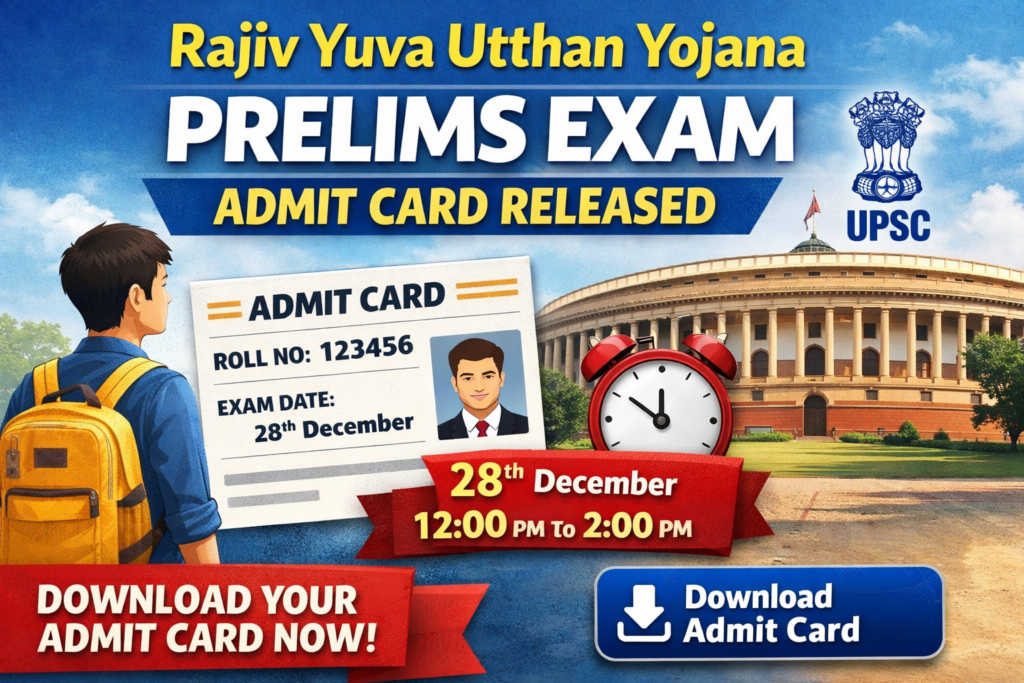 Rajiv yuva utthan yojana admit card: Under the Rajiv Yuva Utthan Yojana, a preliminary selection test for preparation for the Civil Services Examination conducted by the Union Public Service Commission (UPSC) is being held on December 28th. Admit cards for this examination have been released, and candidates can now download them online.