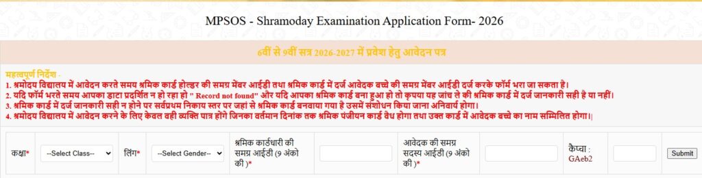 1. श्रमोदय विद्यालय में आवेदन करते समय श्रमिक कार्ड होल्डर की समग्र मेंबर आईडी तथा श्रमिक कार्ड में दर्ज आवेदक बच्चे की समग्र मेंबर आईडी दर्ज करके फॉर्म भरा जा सकता है।